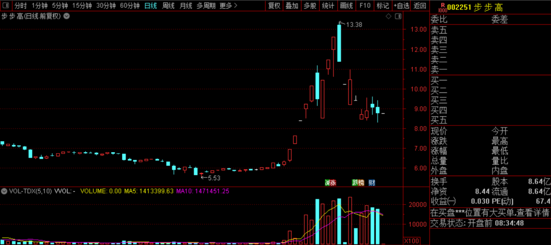 步步高的这波行情随即走到了头,股价立马下跌,仅四个交易日内就有三次跌停,较高点已经跌去40%。
