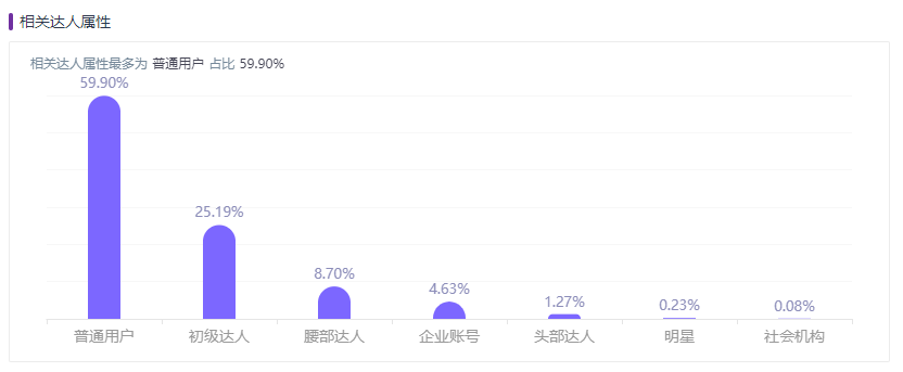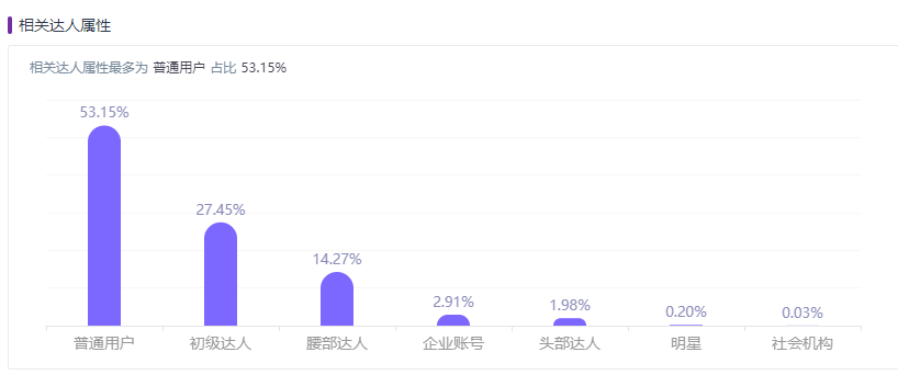 如位居小红书品牌投放费用之首的兰蔻,相关达人属性占比最大的是普通用户:53.15%。数据显示,粉丝数量小于300的素人用户成为兰蔻继腰部达人之后的“种草”的主力军之一。