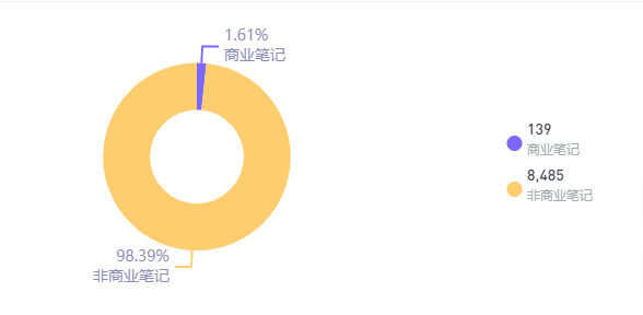 通过对4月投放费用位于前十位的美妆品牌的相关笔记及达人属性分析,兰蔻、雅诗兰黛、阿玛尼、圣罗兰、魅可的普通用户笔记分享数占比均超过总笔记量的50%。其中,圣罗兰YSL相关达人属性为普通用户的比例高达59.9%,非商业笔记的比例高达98.39%。