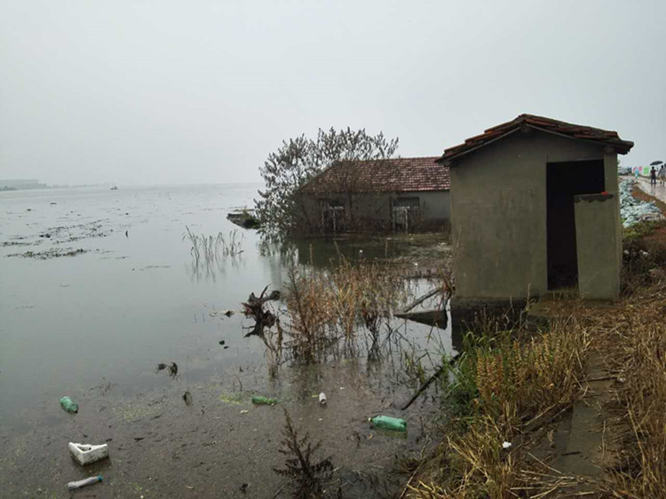 大堤爆破后,大徐湾村民到现场拍照片,“来看看,舍不得。”