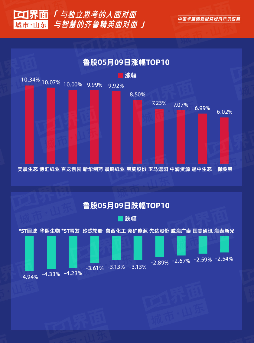 5月9日,山东省内沪深股票有207只个股上涨,52只个股下跌;总市值过千亿的有万华化学(600309)、海尔智家(600690)、兖州煤业(600188)、歌尔股份(002241)、青岛啤酒(600600)、中航沈飞(600760)共7家,500亿-1000亿的共有4家,分别是潍柴动力(000338)、山东黄金(600547)、华鲁恒升(600426)、华熙生物(688363)。