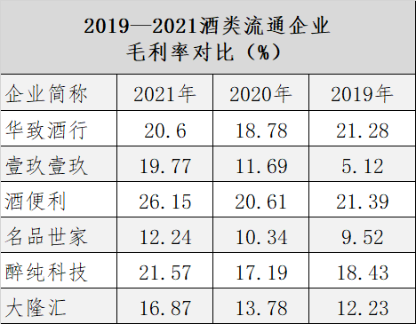 从华致酒行的年报中可以发现,2020年,其毛利率首次跌破20%,主要原因是白酒、葡萄酒的毛利率下降,而2021年的毛利率,虽低于2019年,但高于2020年,已经重回20%以上。综合几家公司的年报来看,毛利率增长的原因与名酒品牌强势主导,厂商加强合作,增加酒类产品种类,以及营销方式多样化有关。