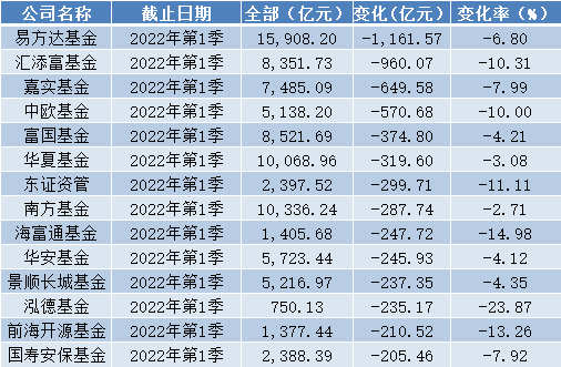 《每日财报》注意到,在上述14家规模下降超过200亿元的基金公司中,多数公司总规模较大,所以计算下来,变化幅度并不高。而泓德基金公司规模不足千亿元,单季度规模下降235.17亿元,环比降幅达到23.87%,成为降幅最大的基金公司。