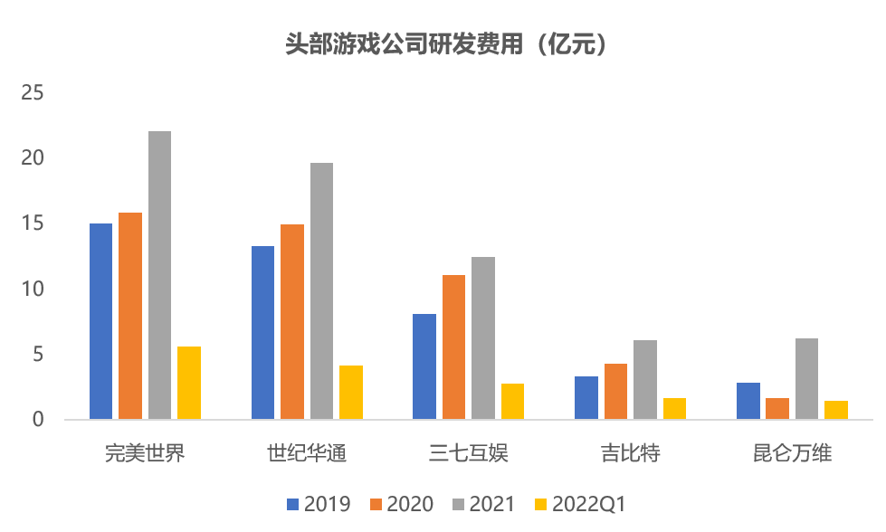 完美世界在研发上下了“血本”,2019-2021年累计研发费用超50亿元,可以说是国内最重视研发的游戏公司之一。21年,完美世界的研发费用达22.11亿元,同比增长39%。