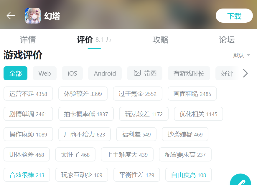 截至目前,《幻塔》在TapTap评分仅5.7,B站评分仅4.5(原神TapTap评分8.5,B站评分6分)。不少玩家评价《幻塔》是披着开放世界皮的mmo游戏,存在“过于氪金”、“剧情单调”、“玩法较差”等问题。