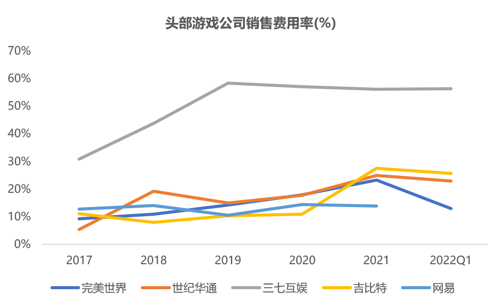 从销售费用率来看,完美世界处于行业正常水平,略低于世纪华通和吉比特,远低于“买量大户”三七互娱。