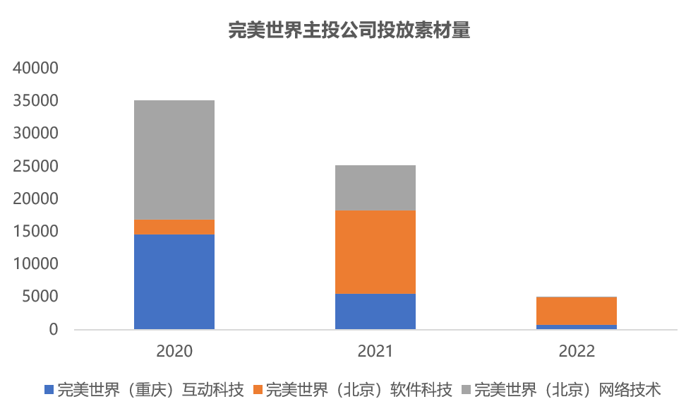根据DataEye-ADX数据,完美世界旗下的主投公司21年以来投放素材量呈下降趋势,粗略计算,21年投放素材量较20年减少了28%,22年至今投放素材量不到21年全年的两成。