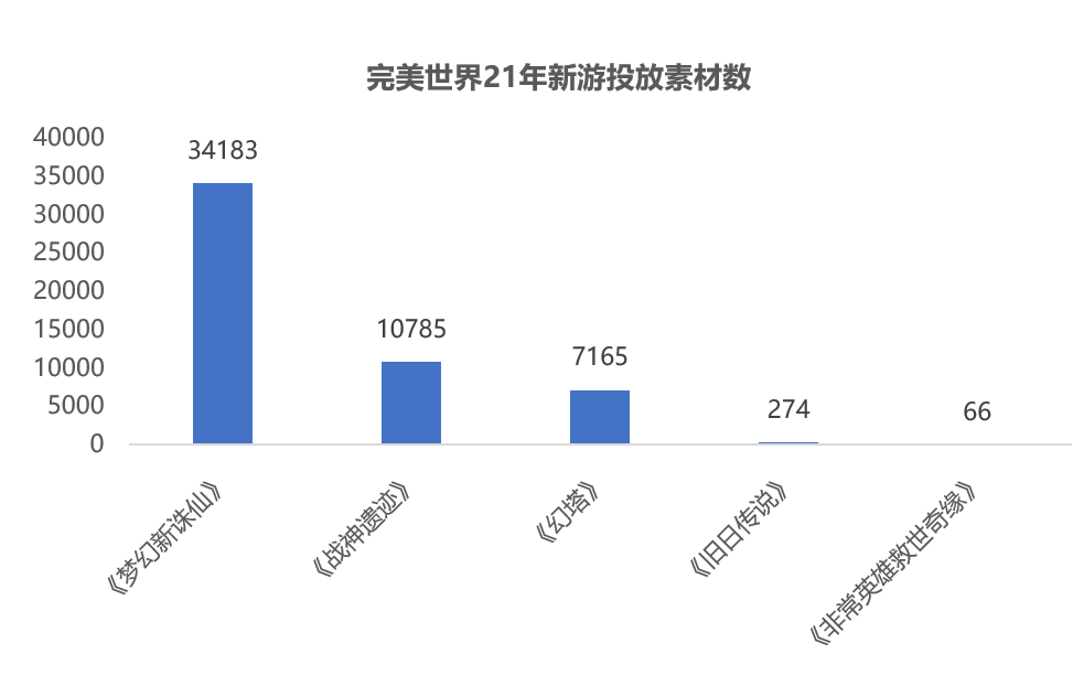 从效果广告投放量来看, MMOARPG游戏《战神遗迹》和回合制MMO《梦幻新诛仙》沿袭了完美世界以往传统的买量打法。