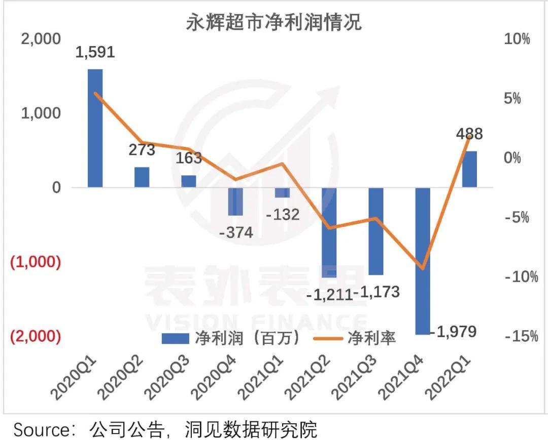如下图,该季度永辉超市净利润结束连续5个季度的亏损,首次恢复了正增长。