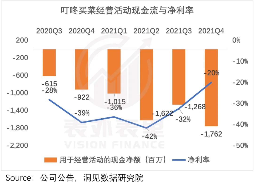 以叮咚买菜为例,其重资产的前置仓模式以及“最快29分钟送达”带来的高履约成本,导致其2019-2021年,累计亏损超过100亿。