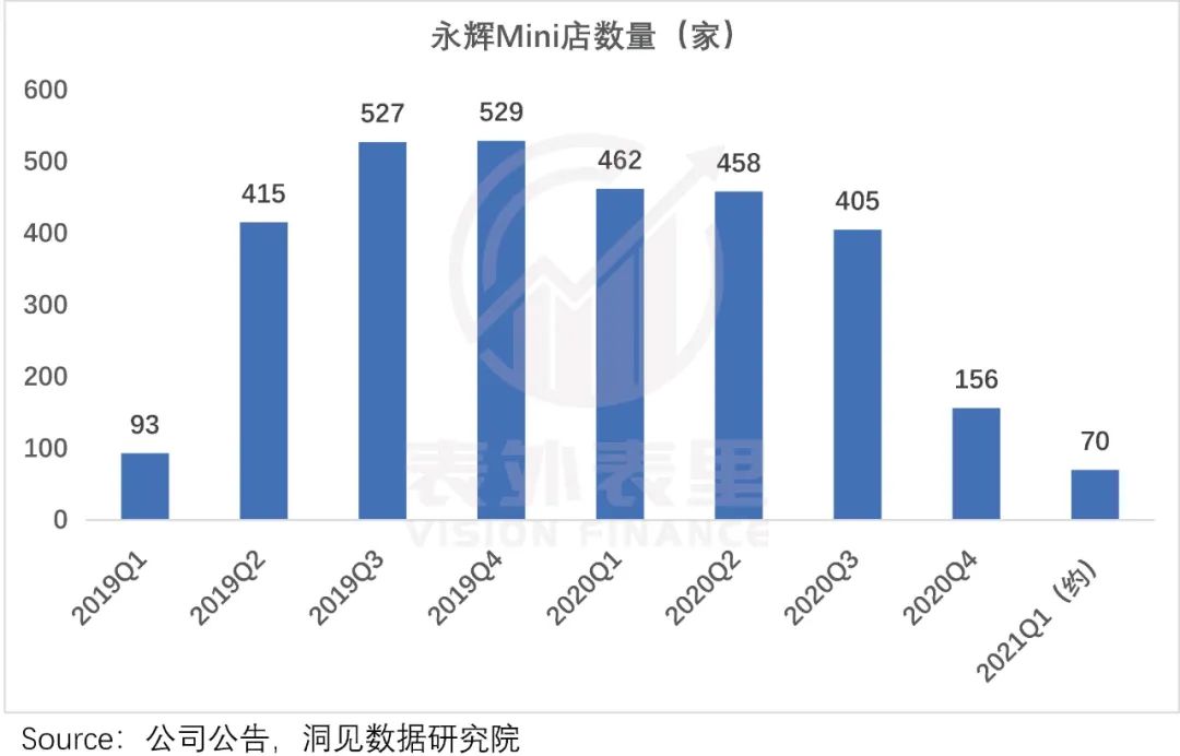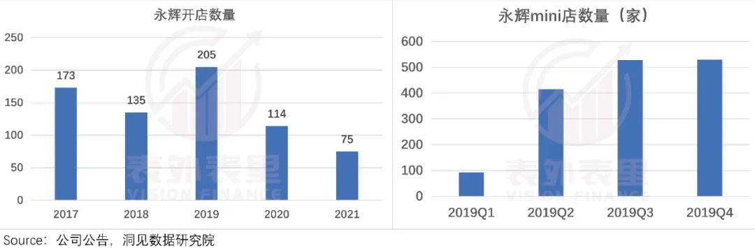 数据显示,2019年永辉超市进行了达规模扩张。如下图,大店数新增205家,mini店新增573家。