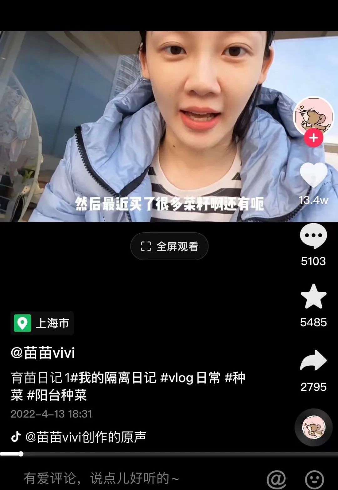 而抖音上内容分发机制更加中心化。在抖音上比较火的种菜视频,大都是明星或网红。黄龄、苗苗、严屹宽杜若溪夫妇纷纷在居家vlog中晒出自己的种菜视频。