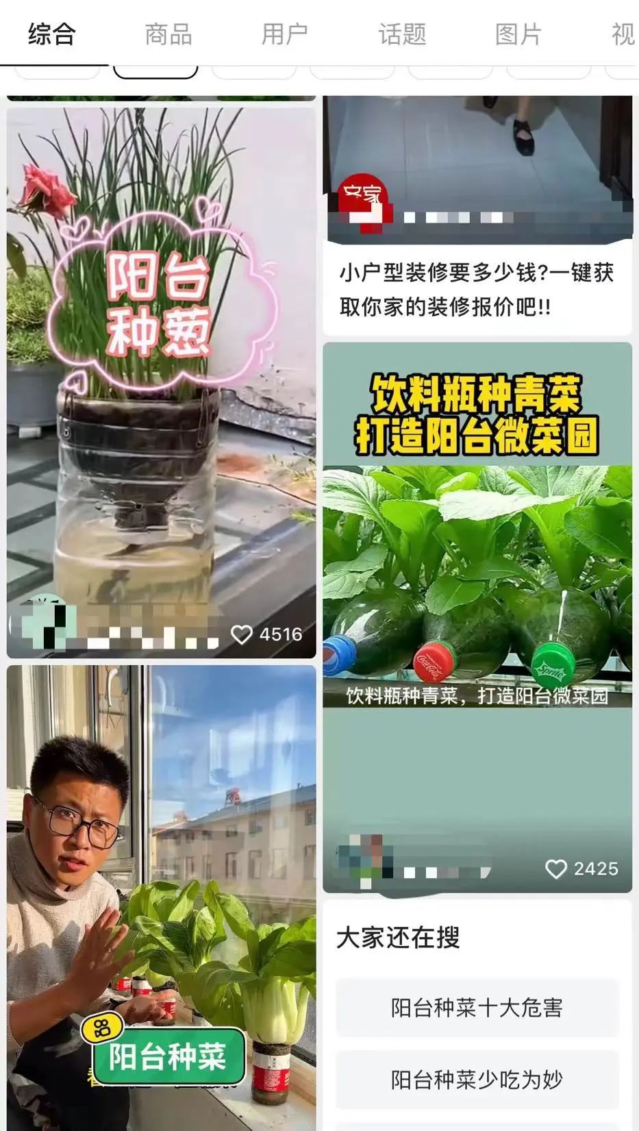 在快手上的种菜,则更加接地气。不同于小红书上的精致,在快手上,最常见的种菜容器竟然是塑料瓶。