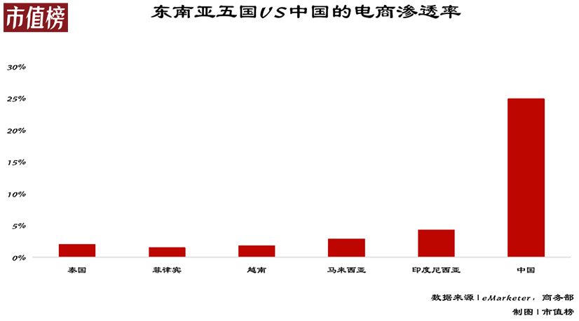 他们过去彼此之间的竞争、他们在中国曾遇到过的竞争,很可能会在东南亚市场重演一次,而且是以更激烈的姿态——除新加坡外,目前东南亚零售电商渗透率均低于5%,相比之下,中国是24.9%。