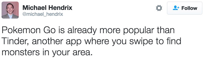 Pokemon Go上线短短一周就已经成为了全球最流行的手机游戏,流行程度甚至超过了微信摇一摇,后者也是一款凭借GPS定位让你搜索周边怪兽的软件。