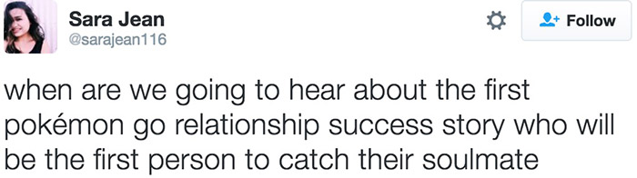 网友纷纷猜测,过不了多久肯定就会有媒体报道两个人因为共同追捕同一只小精灵而相遇相知相爱从此幸福的生活下去:“我在Pokemon Go里捕捉到了一只灵魂伴侣。”
