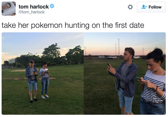 有机智的宅男已经开始行动了:“带着我的她进行第一次小精灵狩猎。”