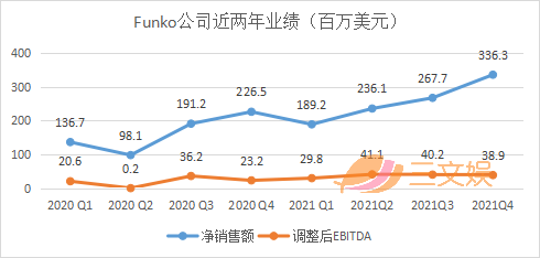 2021年全年,Funko净销售额突破10亿美元,达到10.29亿美元,同比增长58%;调整后EBITDA为1.50亿元,同比增长86.9%。