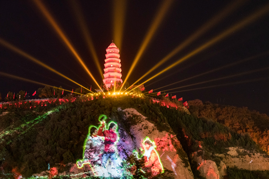 2019年10月20日,陕西延安,宝塔山的灯光秀。视觉中国供图