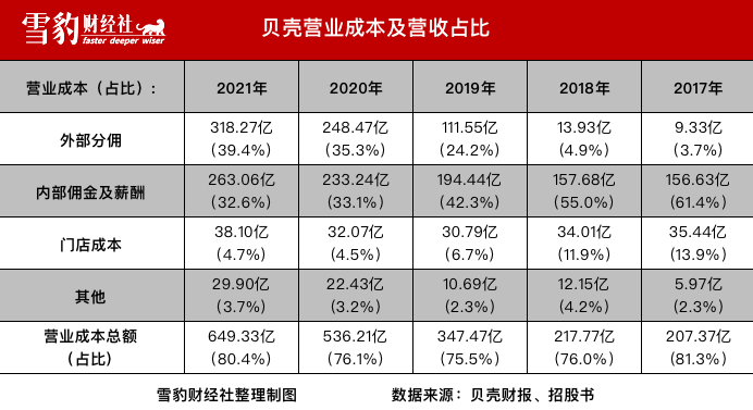 扣除门店及其他成本,贝壳支付的外部分佣、内部佣金及薪酬合计占比高达70%左右,这直接挤压了本就不高的毛利率。