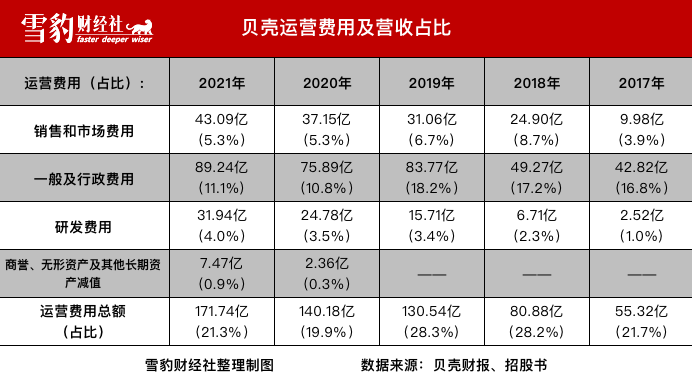 不过,居高不下的营业成本和运营费用成为贝壳盈利的拦路虎。过去5年,其营业成本与总营收之比一直在80%的水平波动。