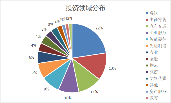 其次,投的较多的是电商零售领域,占比13%。包括生鲜食材B2B平台美菜网、酒水B2B电商平台易酒批、生鲜配送平台爱鲜蜂等。