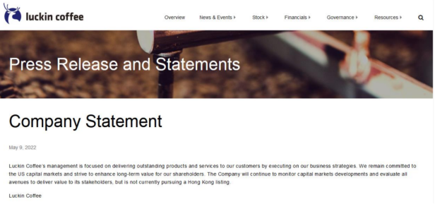 近日,有消息称瑞幸咖啡管理层正考虑在中国香港重新上市。瑞幸咖啡5月9日晚发布声明表示,公司管理层专注于贯彻公司业务战略,公司仍将持续致力于美国的资本市场,并努力为公司股东提高长期价值,目前尚未有赴港上市的计划。