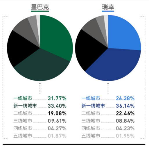 报告显示,瑞幸在新一线城市和二线城市的学生用户占比都达到了16%左右的水平。在年龄层次上,瑞幸抓住了新兴城市的年轻群体,在新一线城市和二线城市18~24岁的年龄占比上,都达到了25%以上,同时星巴克的占比为12.04%和15.72%。