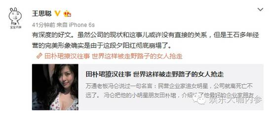 最近不管是商界还是娱乐圈,都被王石和田朴珺搅得满城风雨。很多人说王石的失败归根结底是田朴珺这个“狐狸精”在作祟,所以红颜祸水果然是没错。