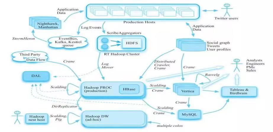 图:Twitter大数据平台架构(来源:《云原生数据中台:架构、方法论与实践》)