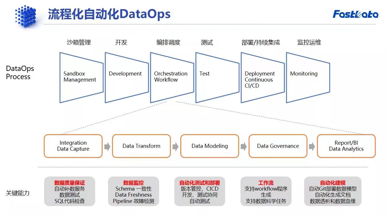 维基百科对DataOps的定义是一种面向流程的自动化方法,由分析和数据团队使用,旨在提高数据分析的质量并缩短数据分析的周期,简而言之,就是提供一整套工具和方法论,让数据应用的开发和管理更加高效。但Gartner也指出,DataOps虽然可以降低数据分析的门槛,但并不会让数据分析变成一项简单的工作,与DevOps的落地一样,实施成功的数据项目也需要做大量的工作,比如深入了解数据和业务的关系、树立良好的数据使用规范等。