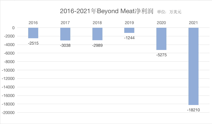 一方面,当下植物肉的技术发展还处于发展阶段,植物肉的生产成本仍较高。比如,Beyond Meat的收入无法覆盖其较高的成本支出,疫情的冲击下,业绩亏损持续放大,2021年亏损更是达到了1.821亿美元。