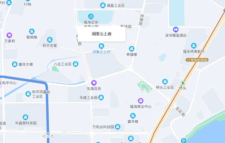 这一项目不仅靠近12号线桥头西站,更靠近11号线桥头站,但距离两个站点的步行时间都不算近,或超过15分钟。项目周边有桥头学校、桥兴学校、福海足球体育公园等配套,但缺乏集中商业。
