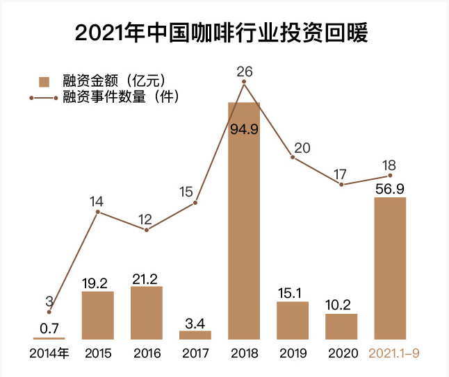 投资者对整体咖啡市场的信心也在逐步回升,融资金额和数量都较2019年和2020年有较大提升,接近2018年的高位。