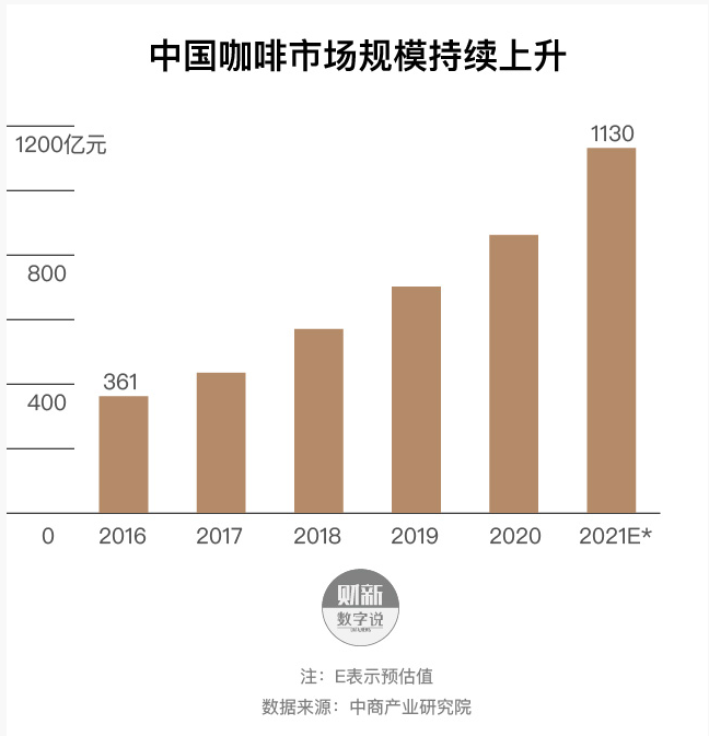 现在的咖啡市场上,消费者已经接受了教育,咖啡市场规模逐年加大。产业咨询机构中商产业研究院统计,2020年中国咖啡市场规模为861亿元,预计2021年涨幅将与2018年基本持平,上升三成左右,总规模或达1130亿元。