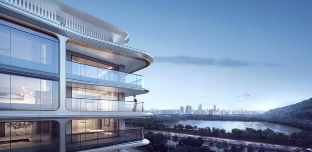 三期建筑在延续一、二期“山水”立面设计【双C】线条造型的基础上,进一步强化科技感、公建化的立面观感,以曲线美学引领全新都市大平层形象,将豪宅的专属定制感与高级感通过立面细节展示得更为明显与精致。