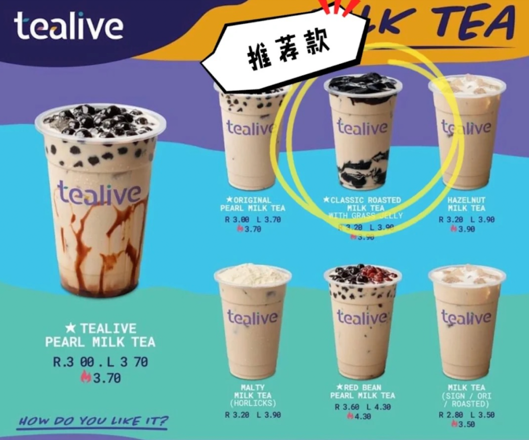 在菜单的品类上,霸王茶姬的独特性就凸显出来了。「醉云南」、「伯牙绝弦」这些浓缩了中华文化的品名在国内早已是常规操作,但和大马本地最大的奶茶连锁Tealive(原Chatime日出茶太)有着很大不同。新的概念纷至沓来,传统的以木薯粉为核心的珍珠小料+植脂末冲泡奶茶,或早已身中数枪。