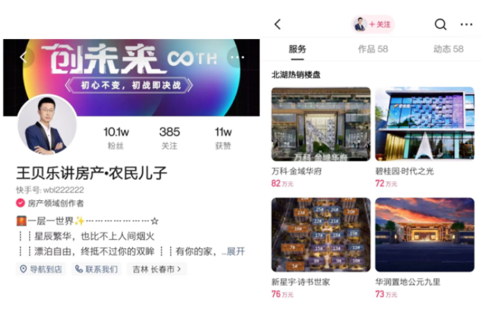 事实上,在快手平台上类似王贝乐这样的房产主播还有很多,他们大多均是从房地产经纪转型而来,但也并非所有人都有如王贝乐这样的好运气。