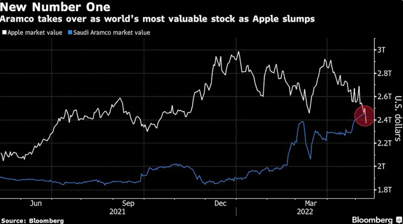 这使得沙特阿美超越苹果公司,再度成为全球市值最高的公司。