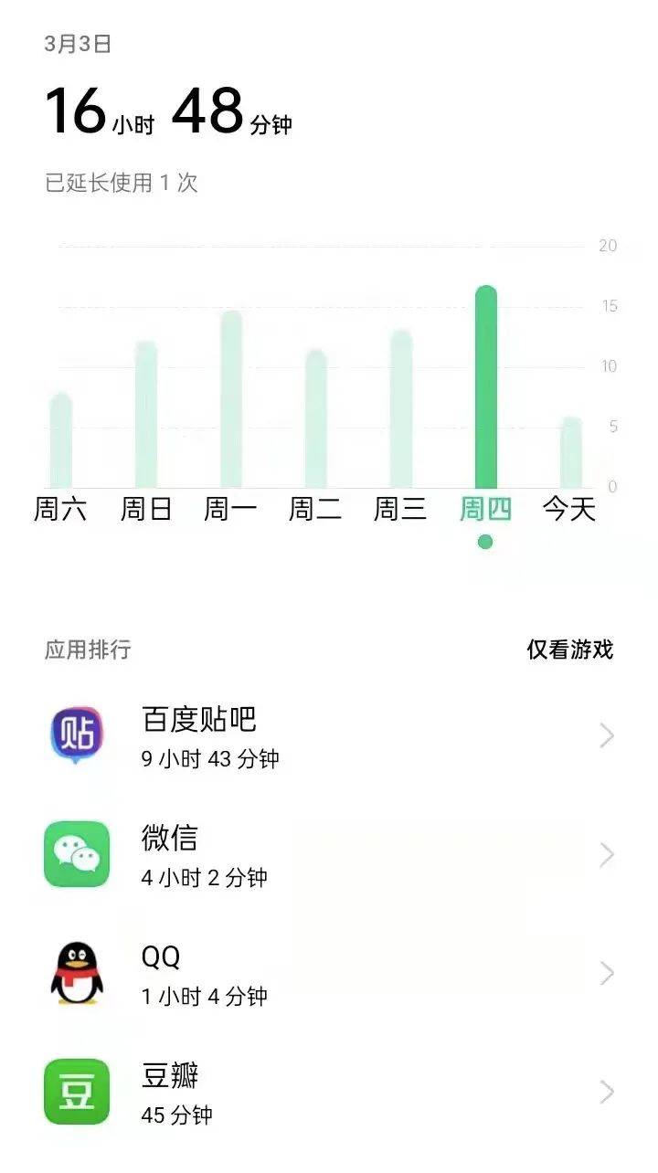 作为重度机奴,思思日均刷机12个小时,“一开手机,醉生梦死”。3月初的一天,她甚至在贴吧里消磨了近10个小时,“说真的,现在我都想不起来看了啥了,就随便瞎逛”。