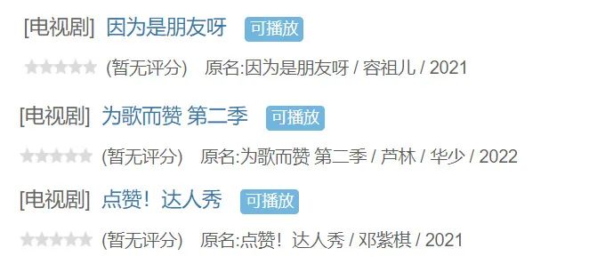 抖音综艺《因为是朋友呀》《为歌而赞2》《点赞!达人秀》都未在豆瓣上开分