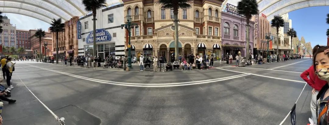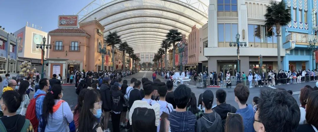 排队合影的队伍一直维持在三四个人左右,比起园区内动辄排队半小时到一小时的项目简直不足挂齿,和园区内其他需要排队合影的IP形象“功夫熊猫”“怪物史瑞克”相比,队伍也要短得多。