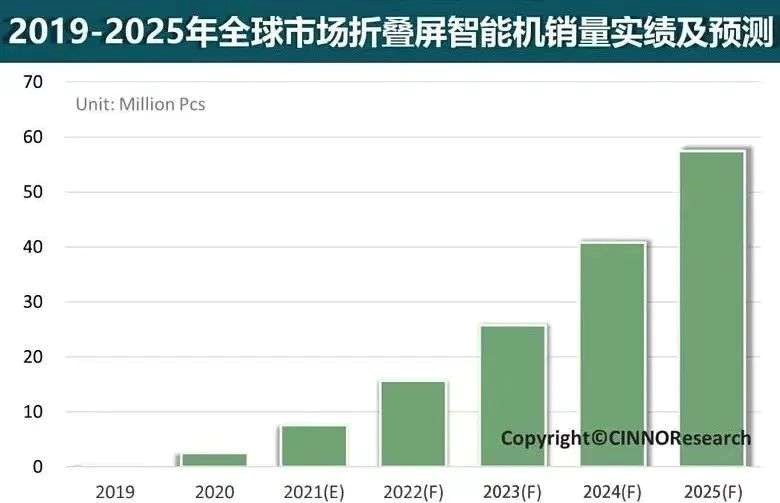 值得注意的是,在未来折叠屏手机市场规模将持续扩大,根据CINNO Research预测,2022年全球市场折叠屏智能手机销量有望达1,569万部,同比增长107%。2025年全球折叠屏智能手机销量有望达5,740万部,年均复合增长率CAGR达66%。