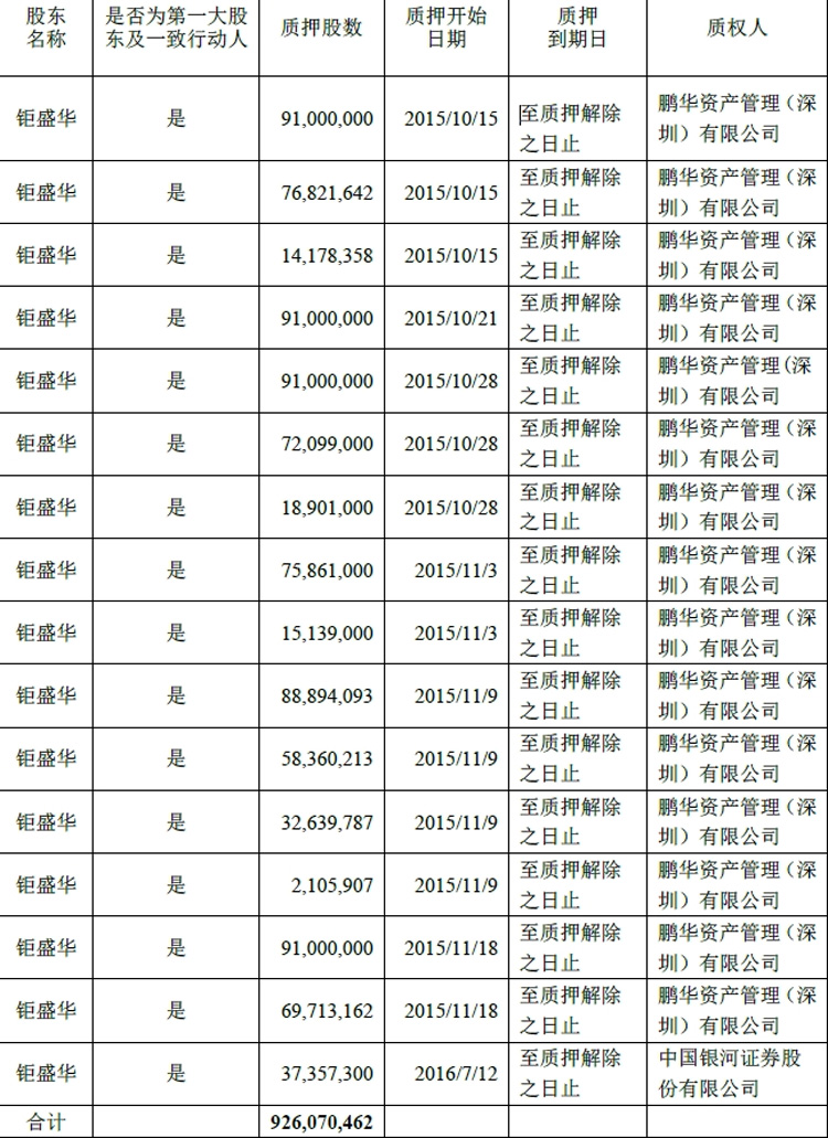 这个结果无疑是宝能系最不希望见到的。7月12日,宝能系旗下主力账户钜盛华将持有的万科37,357,300股无限售流通A股,通过质押回购方式质押给中国银河证券股份有限公司。至此,钜盛华已经将手中全部万科股份予以质押。