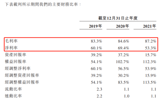 净利表现同样不俗,近三年的净利润分别达到5.75亿元、8.26亿元和8.28亿元,净利率分别为60.1%、69.4%和53.3%。