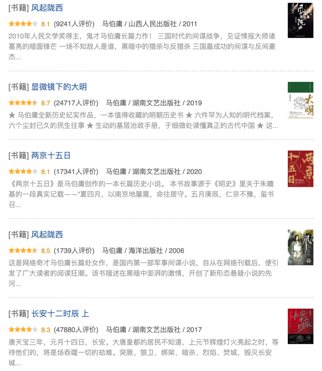 根据豆瓣读书,马伯庸42部作品拥有评分,其中7部超过8分、28部作品超过7分,这对于一位高产作者来说,成绩不俗。