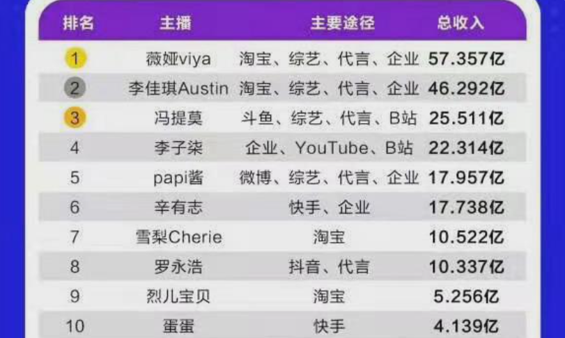 冯提莫最后一次引发大众讨论,是因为去年某财经机构制作的“网红新经济”榜单。榜单显示,冯提莫在一众网红主播中收入名列第三,仅次于李佳琦和薇娅。