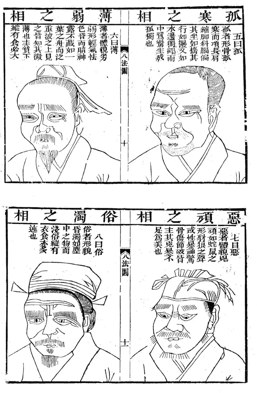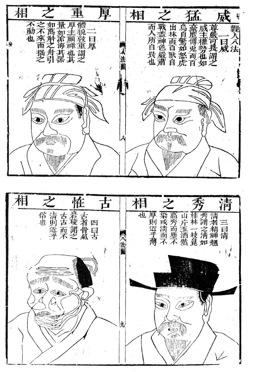 王兴的新著《明代的相术:命运与身体》(Physiognomy In Ming China: Fortune and the Body)与大多数讨论术数的著作不同,作者除了讨论相学文本的演变和分化,还非常关心相术的实践。作者发现,相书的标准化记载和相术的实践之间,其实存在相当大的落差。比如说,为了说明某种长相特征,相书常常会画许多幅头像,以便读者按图索骥。但以当时的刻印技术,实在太难表现出微妙的面部差别,更别说那些分类是不是合理、标注的形容词(清、奇之类)能不能言传了。结论是,古人如果想靠阅读相书来掌握这门技术,恐怕并不容易,还得靠另拜名师,指点江湖伎俩才行。