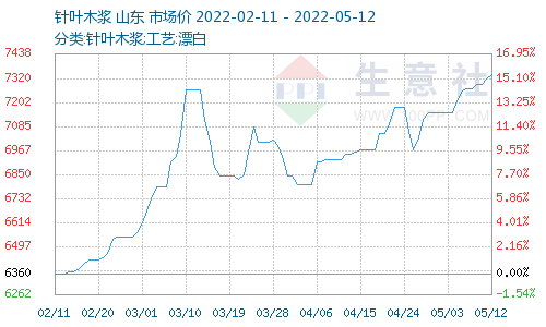 五一假期过后,木浆价格持续上调,截至5月11日,针叶木浆、阔叶木浆的市场价格分别为7320元/吨、6210元/吨,与春节后(2月11日)相比,分别上涨了15%、16%。
