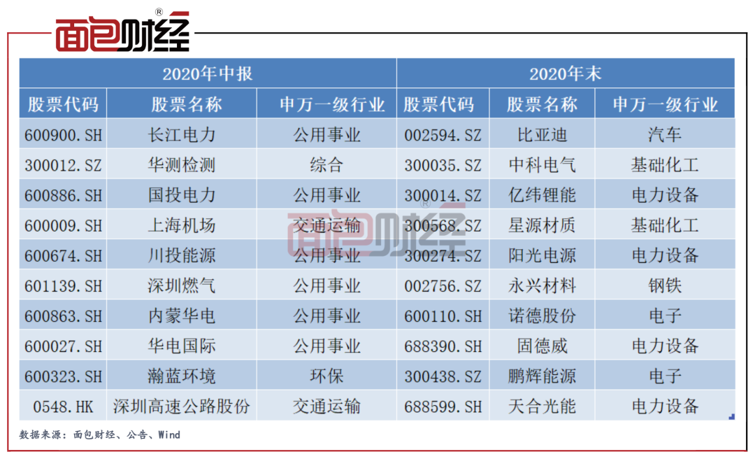 图3:前海开源公用事业股票由崔宸龙接管前后重仓股变化